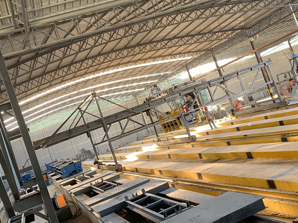 快狗视频(qí)智能(néng)新澤西護欄智能化生產(chǎn)線有2條流水(shuǐ)生(shēng)產線(xiàn),一條主要完成清模、塗脫模劑、安裝邊模、澆築混凝土、振搗的(de)工作,另外一(yī)條則完成拆模、轉運成品(pǐn)的工作。智能化生產線(xiàn)免除了傳統生產(chǎn)需要人工采用振動棒移動振搗和人工(gōng)進(jìn)行混凝土澆(jiāo)築等工作,效率大大提升。 。