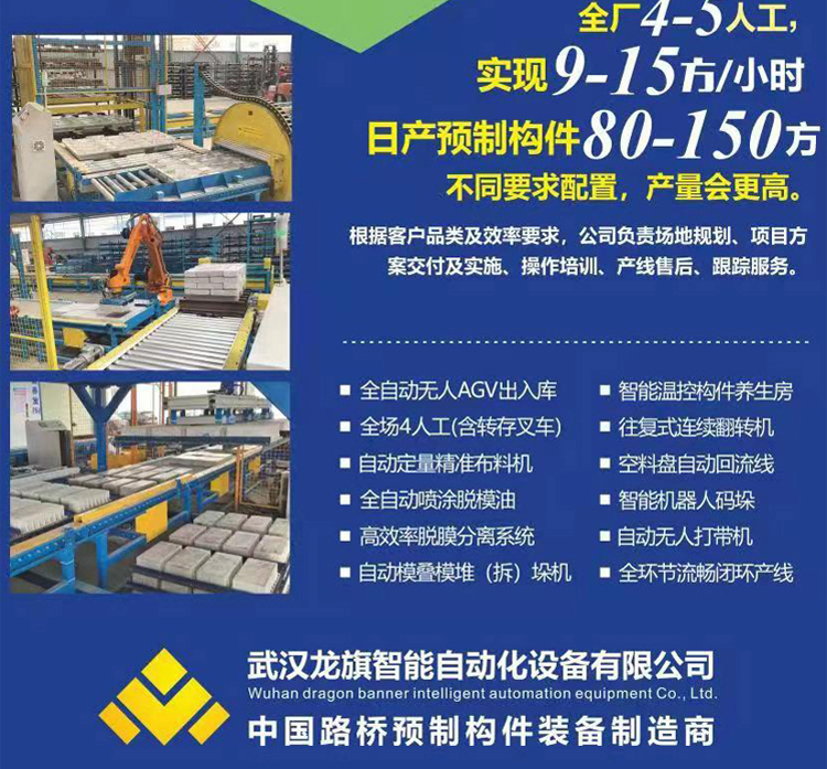3、龍(lóng)旗智(zhì)能(néng)擁有預製構件生產線設備多項國家專利技術。預製塊機械設備核心部件精工製造,采用(yòng)抗疲勞設計,延長(zhǎng)了主機的使用壽命。